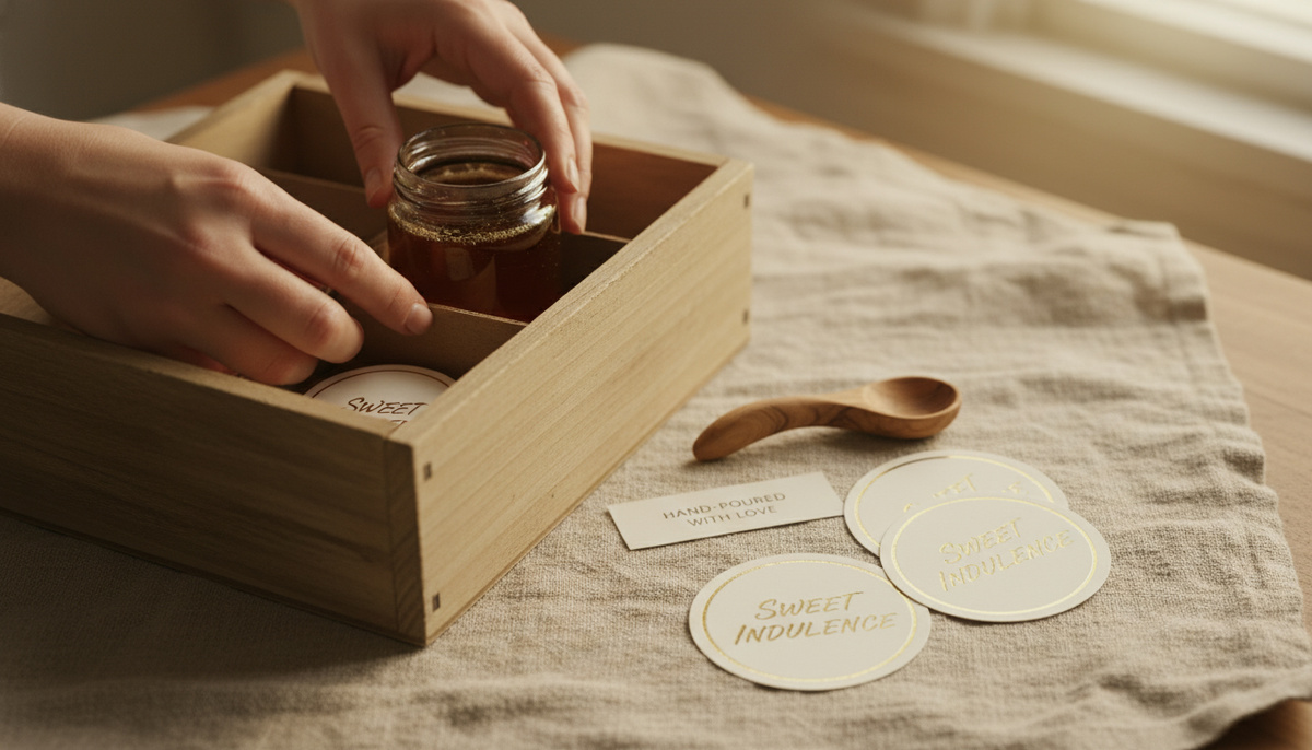 - Эконом: прозрачная баночка, простая бумажная этикетка, крафт коробка без ложки — быстро и бюджетно.