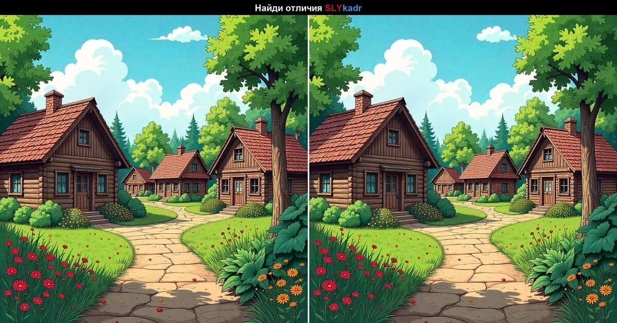 Сегодня вас ждёт спокойная и уютная сцена — маленькая лесная деревушка, где на первый взгляд всё кажется одинаковым. Но не спешите расслабляться 👀