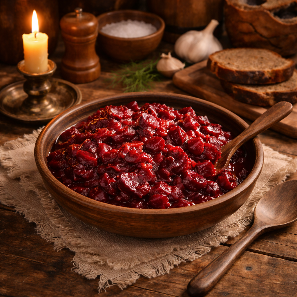 Свёкла в русской кухне занимала особое место. Это был овощ надёжный, долго хранящийся и подходящий для самых разных блюд. Её варили, запекали, добавляли в похлёбки и, конечно, тушили. Тушёная свёкла считалась самостоятельным блюдом, особенно в постные дни, но могла служить и гарниром к более сытной пище. Такую свёклу готовили неторопливо. Она не терпела спешки: только при медленном тушении раскрывался её природный вкус - мягкий, сладковатый, глубокий. Это было блюдо для будней, но с ощущением основательности и уюта. Сегодня мы приготовим тушёную свёклу по классической технологии, без лишних добавок и современных упрощений. Состав минимальный, но именно он позволяет получить тот самый вкус, знакомый по старым домашним кухням. Свёкла плотная и сладкая по природе. При жарке она легко пересыхает и теряет мягкость. Тушение же позволяло: Именно поэтому тушёная свёкла часто готовилась «на два дня». Свёклу очищают и нарезают тонкой соломкой или натирают крупной соломкой.