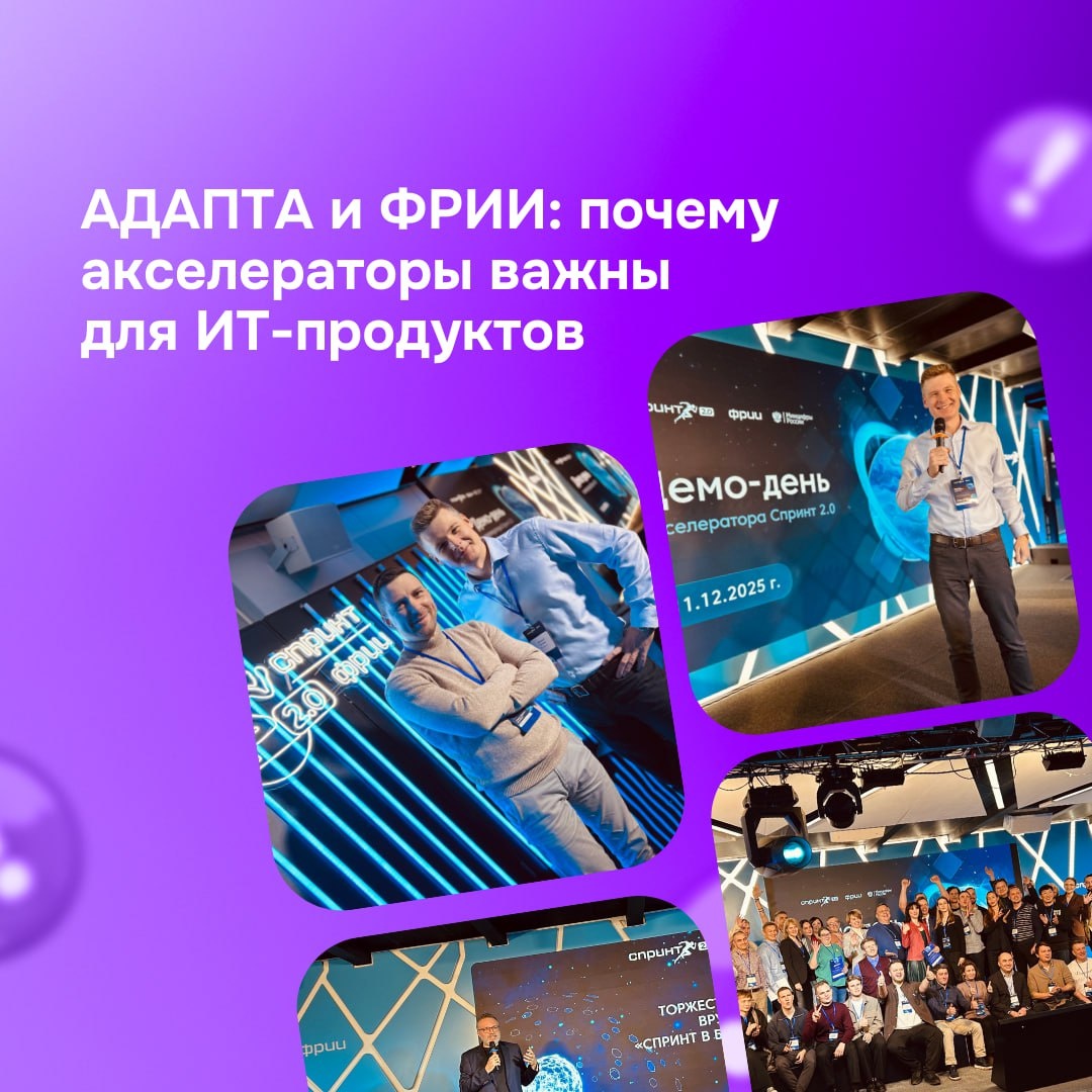 Пообщались с руководством фонда и резидентами, посмотрели, как сегодня развиваются и масштабируются ИТ-продукты в России. Отдельно для себя отметили акселератор Спринт 2.0 — одну из ключевых программ ФРИИ для технологических команд. Это интенсивная трёхмесячная акселерация, направленная на развитие продукта, продаж и бизнес-модели, с выходом на демо-день перед инвесторами и корпоративными партнёрами. Для АДАПТА участие в подобных инициативах — стратегический шаг. В 2026 году мы планируем официальный анонс собственного продукта на базе платформы 1С, и работа в акселераторе ФРИИ является для нас логичным и обязательным этапом подготовки. Для наших клиентов это означает ещё более зрелые и выверенные решения, усиленную продуктовую экспертизу и использование лучших практик рынка. Ждём новый набор резидентов! #АДАПТА_знает