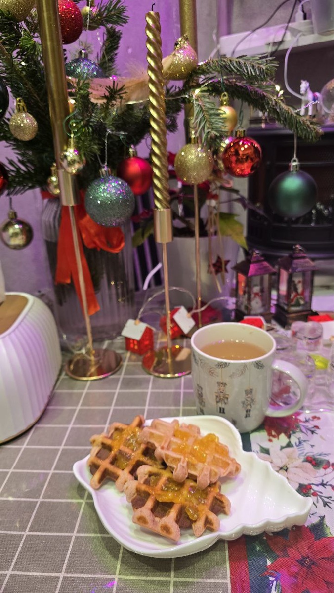 Венские вафли с апельсиновым джемом на завтрак.