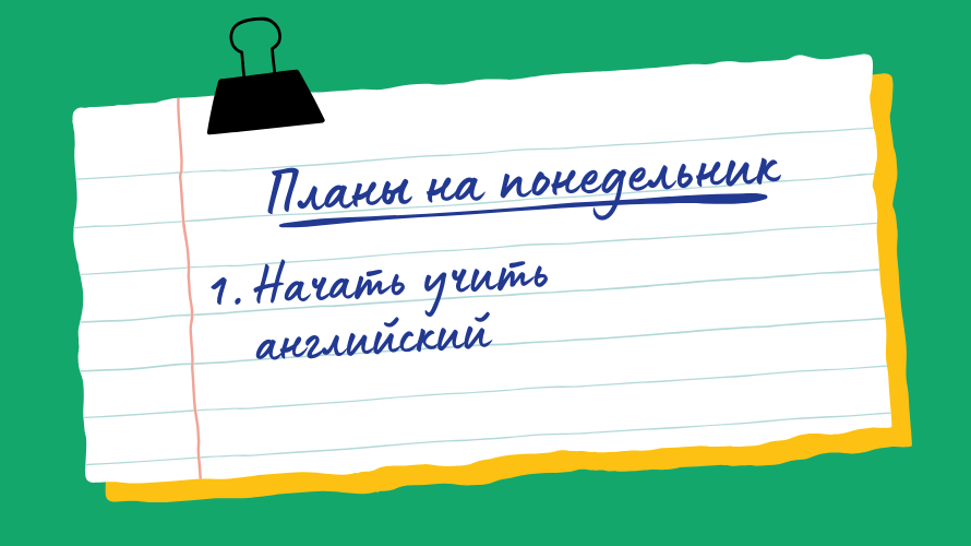 Постоянно обещаете себе начать учить английский с понедельника (следующего месяца, нового года), но так и не находите на него времени в круговороте дел? В этой статье мы расскажем, как включить занятия в напряженный рабочий график. Итак, поехали! Учить английский, будучи ребенком или подростком — одно, и совсем другое, если ты — взрослый, у которого есть куча обязательств: работа, учеба, быт, дети… Однако засесть за уроки по инглишу нам мешает не только банальная нехватка времени. Есть еще два важных фактора: Причем первое вытекает из второго. Согласитесь, если вам чего-то ну очень сильно хочется, вы распланируете свое время так, что найдете хотя бы несколько минут на желаемое занятие. Во-первых, надо замотивировать себя на изучение языка. Решите, для чего вы хотите изучить английский. Может, чтобы общаться с иностранными партнерами? Или участвовать в международных конференциях? А может, хотите читать англоязычные блоги или издания? Что ж, вы определились, ради чего вам нужен язык, ваш