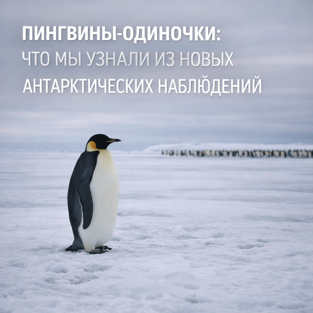 Когда мы слышим слово «пингвины», воображение сразу рисует плотную чёрно-белую толпу: тысячи птиц, тесно прижавшихся друг к другу на льду, бесконечный гул, суета, вечное «вместе». Пингвин давно стал символом коллективности. Но последние антарктические наблюдения всё чаще ломают эту картину. Учёные начали фиксировать то, что раньше считалось исключением: пингвины-одиночки. Я впервые обратил внимание на эту тему не в научной статье, а в коротком отчёте полевой экспедиции: на фото — один императорский пингвин, стоящий в стороне от колонии. Не раненый, не изгнанный. Просто один. И таких кадров становится больше. Ещё 10–15 лет назад одиночный пингвин почти не попадал в отчёты. Причина простая: исследования были сосредоточены на колониях. Сегодня ситуация изменилась.