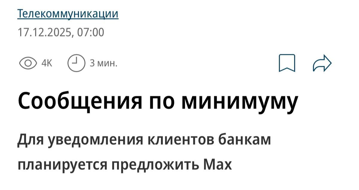 🔴 Все уведомления от банков хотят перевести в Max — инициативу сейчас обсуждают в Минцифры