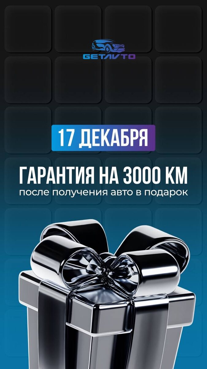 🎁 При заключении договора 17 декабря — гарантия на 3 000 км после получения автомобиля в подарок. Дополнительная уверенность в первые поездки и спокойствие после покупки. По всем вопросам и для старта подбора — @GetAuto_manager_bot Действует при заключении договора 17 декабря