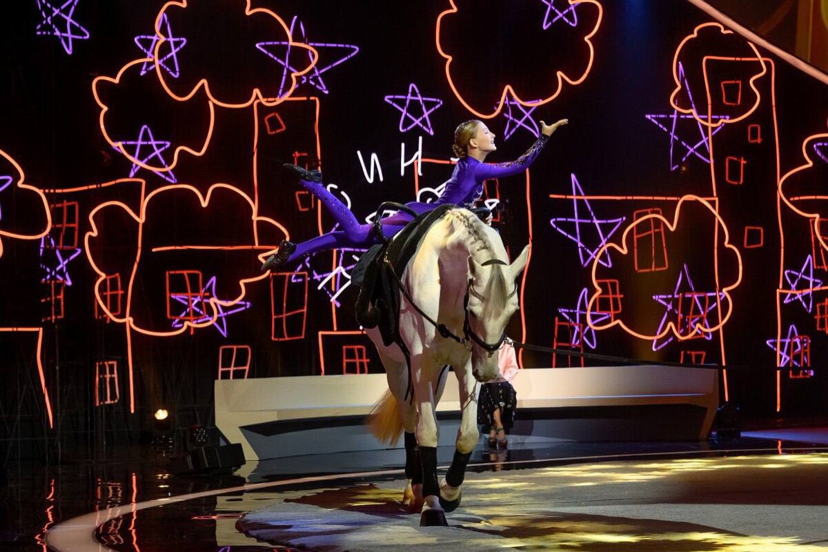 Свежие кадры с выступления спортсменки сборной России по вольтижировке - Киры Виноградовой на лошади Леди Винтер в программе «Синяя птица»🤩