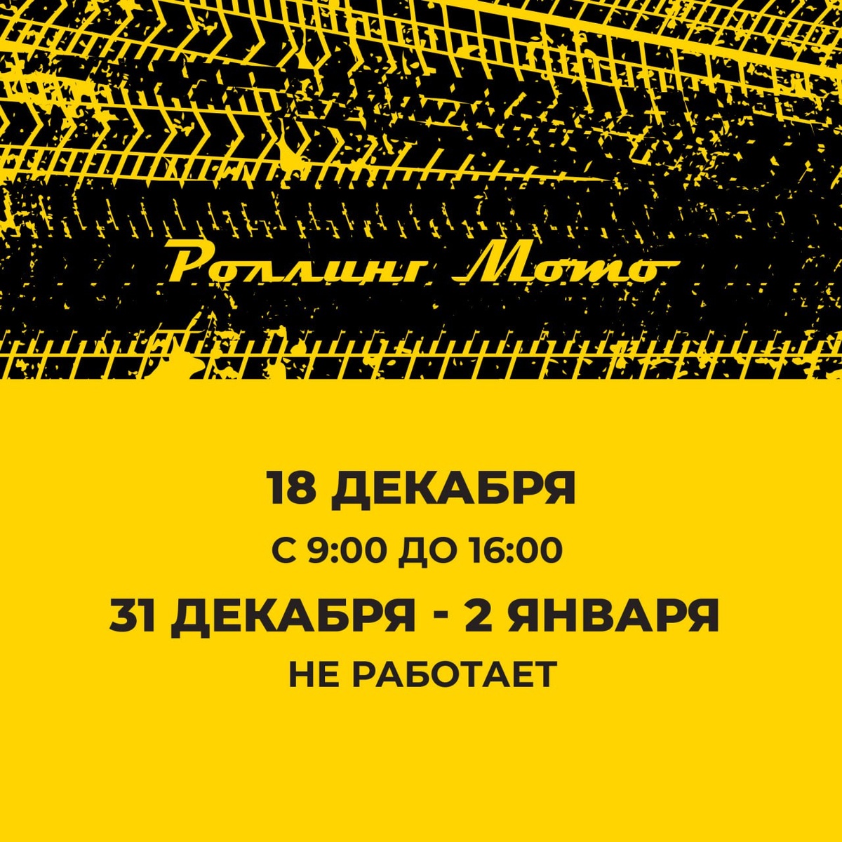 18 декабря – работаем до 16:00 ⏳ 31 декабря, 1, 2 января – ВЫХОДНЫЕ 🎄 3 января (суббота) – выходим и ждем вас с 09:00 до 20:00! ✅ Отличных праздников! Пусть ваш новый год будет таким же ярким, как новая блестящая мототехника! ✨