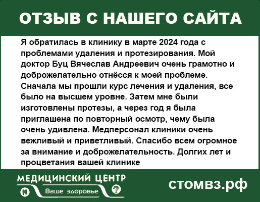 Новый отзыв о работе МЦ "Ваше здоровье" с нашего сайта