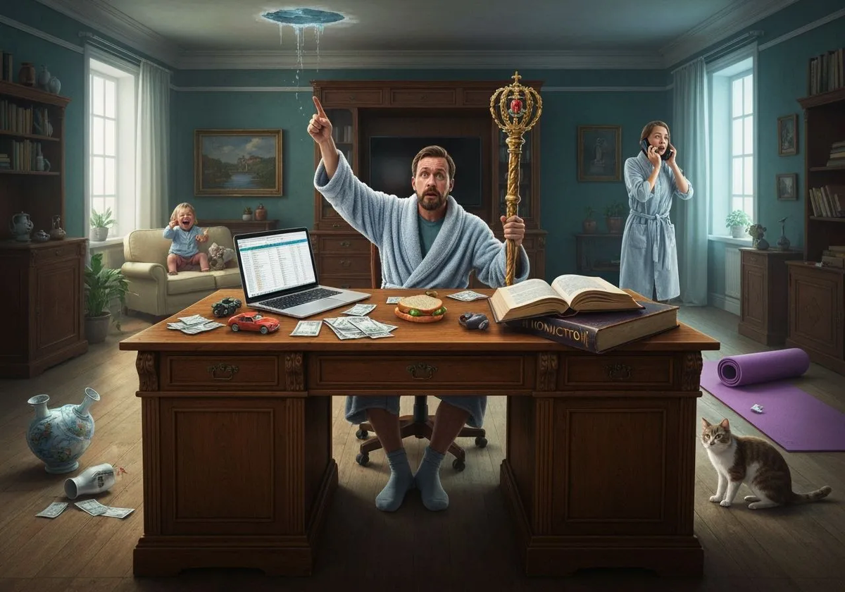 Хозяйственный отдел: Каждый вечер — инвентаризация. «Самому господину проверить все питье, и еду, и порядок, и всякий припас». Современный перевод: «Муж, ты проверил, сколько осталось гречки? А соль? А почему на балконе опять протекает? А ты договорился с сантехником? А счёт за электричество почему вырос? А ты уверен, что мы правильно сортируем пластик?». Это не власть. Это — тотальный логистический контроль.
