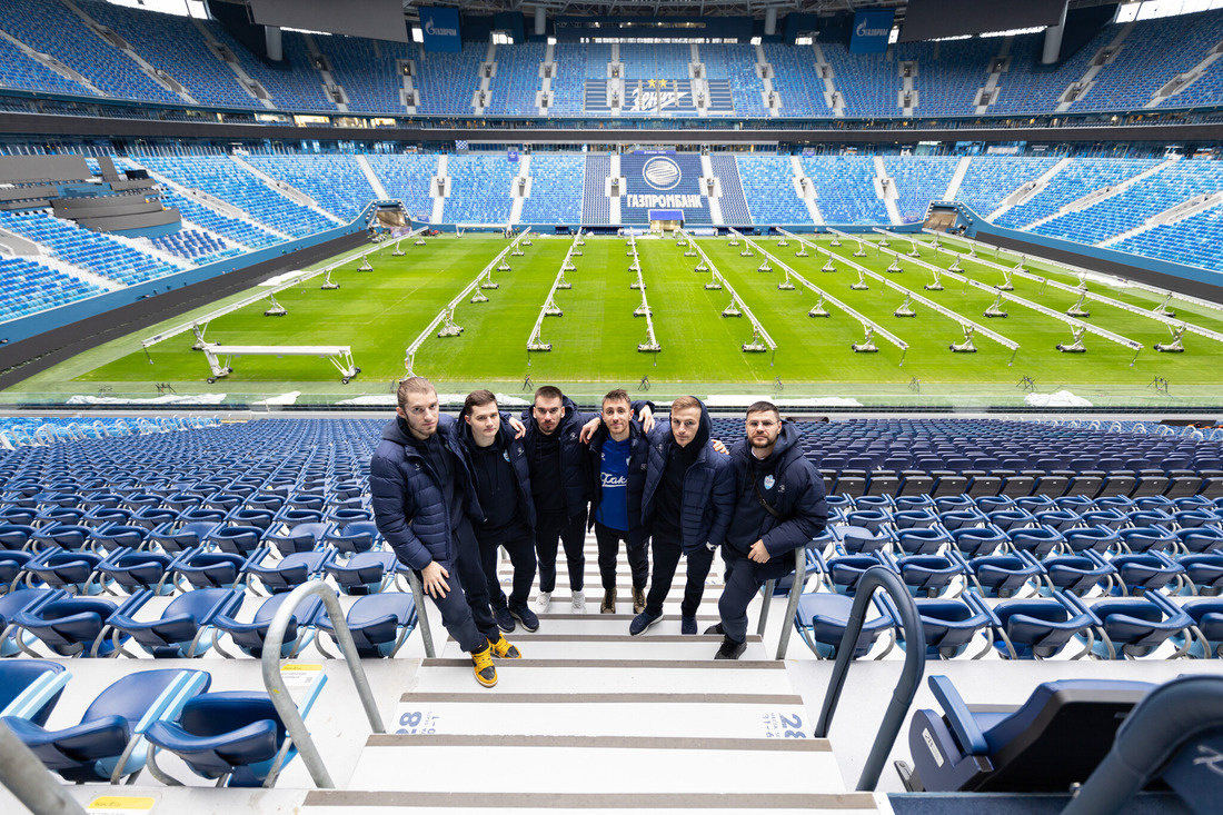В год 100-летия футбольного клуба «Зенит» сургутский мини-футбольный клуб «Факел» посетил знаковые объекты петербургского футбола — «Газпром-арену» и выставку «Зенит — Санкт-Петербург», прикоснувшись к истории, традициям и масштабу легендарного клуба. Фото: Рамиль Нуриев Игроки МФК «Факел» включили экскурсионную программу в план пребывания в Санкт-Петербурге по завершении 12-го тура БЕТСИТИ Суперлиги, в рамках которого команда провела матч с МФК «Кристалл». Фото: Рамиль Нуриев Во время посещения «Газпром-арены» сургутские футболисты смогли вблизи рассмотреть натуральное поле и понаблюдать за процессом ухода за газоном. Здесь применяются осветительные установки, система вентиляции и многоуровневая система полива. Для сохранения покрытия во время проведения концертов зеленую поверхность вместе с корневой системой и грунтом перемещают под трибуны. Фото: Рамиль Нуриев Футболистам также представили Единый центр управления стадионом и биометрическую систему видеоидентификации лиц. Гости арен