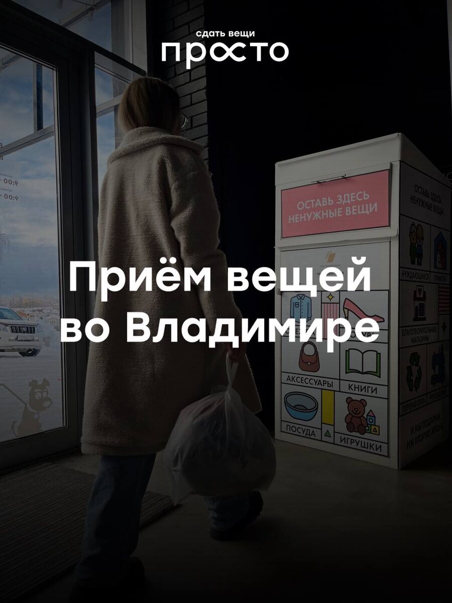 🤍 Мы получили много обращений с просьбами возобновить приём вещей во Владимире — и рады сообщить, что с сегодняшнего дня приём снова открыт. 📍 Принимаем вещи на складе по адресу: г. Владимир, ул. 16 лет Октября, 65 🕘 с понедельника по пятницу с 9:00 до 17:00 Важно уточнить: — приём вещей через контейнеры по городу не осуществляется; — вещи принимаются исключительно на складе по указанному адресу; — к сожалению, на данный момент у нас нет возможности организовать вывоз вещей собственными силами. Передать вещи можно, привезя их на склад самостоятельно, либо воспользовавшись услугами Яндекс Доставки или грузового такси. Если вам удобнее организовать доставку, свяжитесь с нами по телефону — вас подробно сориентируют по дальнейшим действиям и свяжут с ответственным сотрудником, который осуществляет приём вещей. Спасибо вам за осознанное отношение к вещам и желание дать им вторую жизнь 💚 Наш сайт: сдатьвещи.рф +7 (995) 507-27-37