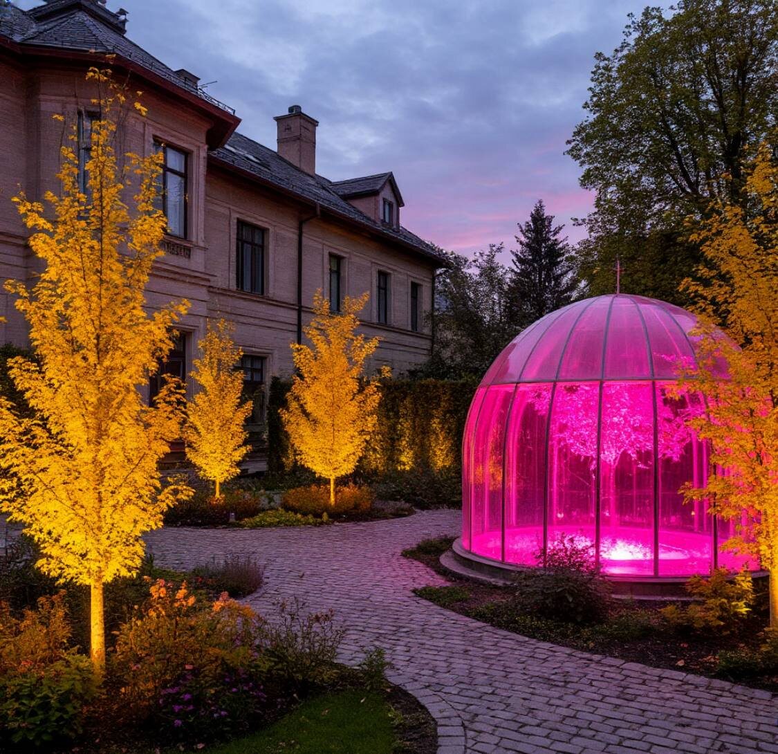 А заплутать во дворе Вальпургии было проще простого! Обширный двор вмещал в себя несколько строений помимо самого дома, который они с Андреем приметили еще из далека… Где-то вдалеке мычали коровы и кудахтали куры, а по левую руку, Коля заметил огромный сад, но цветы в нем были какие то странные… Сплошь мохнатые или покрытые иглами… Ярких желтых и фиолетовых окрасов, их со страшным вздохом опрыскивали хитрые системы полива… А дальше, если совсем уж хорошо приглядеться, виднелись шарообразные теплицы, которые даже при свете дня, пусть и угасающего, освещались фиолетовыми led-лампами.