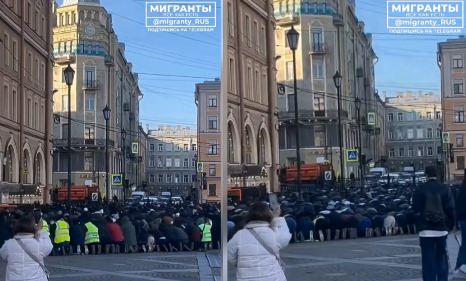 Сцена, развернувшаяся на днях в Северной столице, видеокадры которой разошлись по соцсетям, поразила даже видавших виды петербуржцев: несколько сотен человек одновременно опустились на колени для совершения молитвы прямо на одной из центральных улиц Санкт-Петербурга. В результате движение транспорта оказалось фактически парализовано — проезжая часть была полностью перекрыта живым коридором из желающих совершить религиозный обряд.