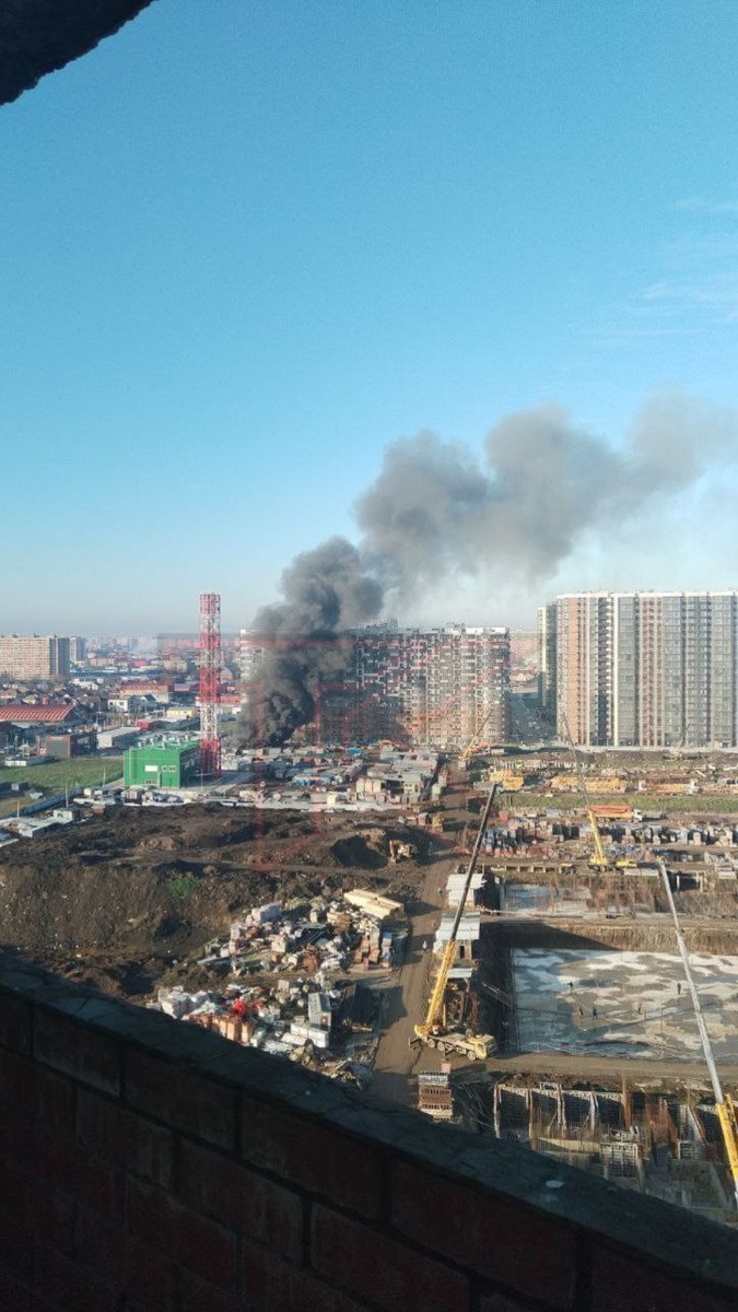 Пожар произошел в строительном городке в районе улицы Кирилла Россинского.
