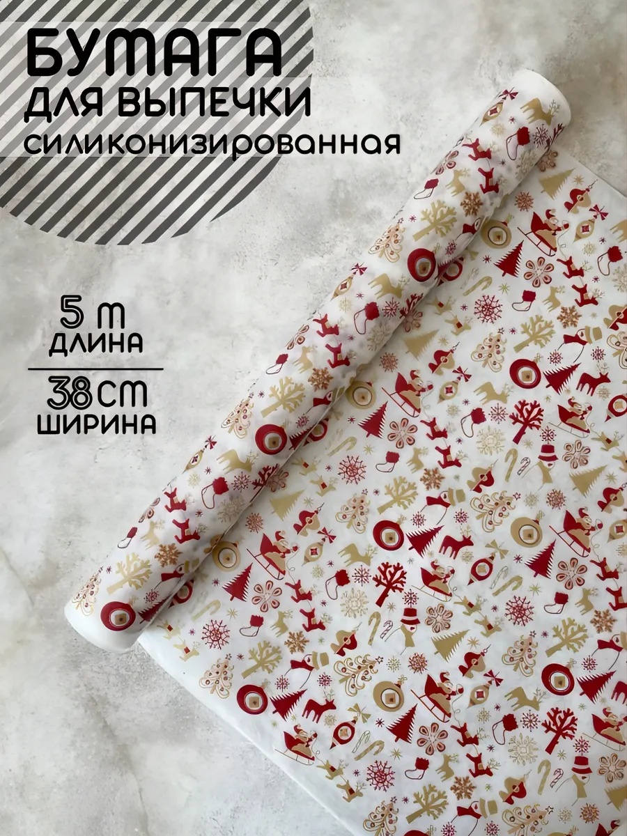 Бумага для выпечки Новый год силиконизированная 5м