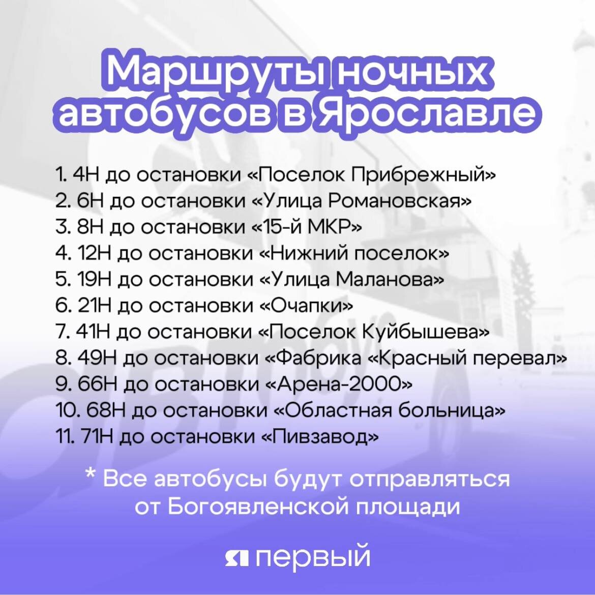 ! Рейсы будут осуществлять с 26 декабря по выходным, рассказал губернатор Михаил Евраев. Всего будет 11 маршрутов – смотрите в нашей карточке⬆️ Напомним, заговорили о планах по запуску ночных автобусов в областной столице в сентябре. Тогда глава региона во время пресс-конференции отметил, что этот шаг позволит ярославцам спокойно добираться из центра в отдаленные районы и обратно. Расписание станет известно позже. Ставьте 🔥, если считаете, что ночного транспорта в городе не хватало 💚 Подписаться на «Тelegram» | Подписаться на канал в «МАХ»
