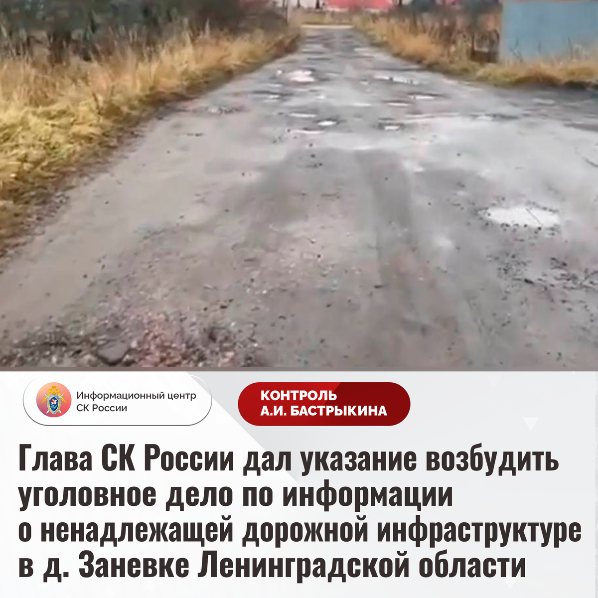Глава СК России дал указание возбудить уголовное дело по информации о ненадлежащей дорожной инфраструктуре в д. Заневке Ленинградской области