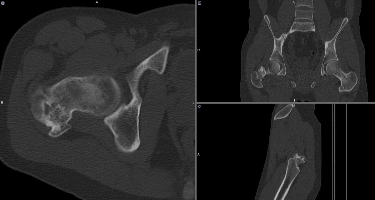 ! Пациенту было выполнено КТ, в результате которого в шейке бедренной кости было обнаружено образование. Молодой человек далее был направлен на остеосцинтиграфию, на которой было выявлено, что данное образование также накапливает радиофармпрепарат. Ваши варианты, что за образование у пациента и каков механизм накопления РФП?