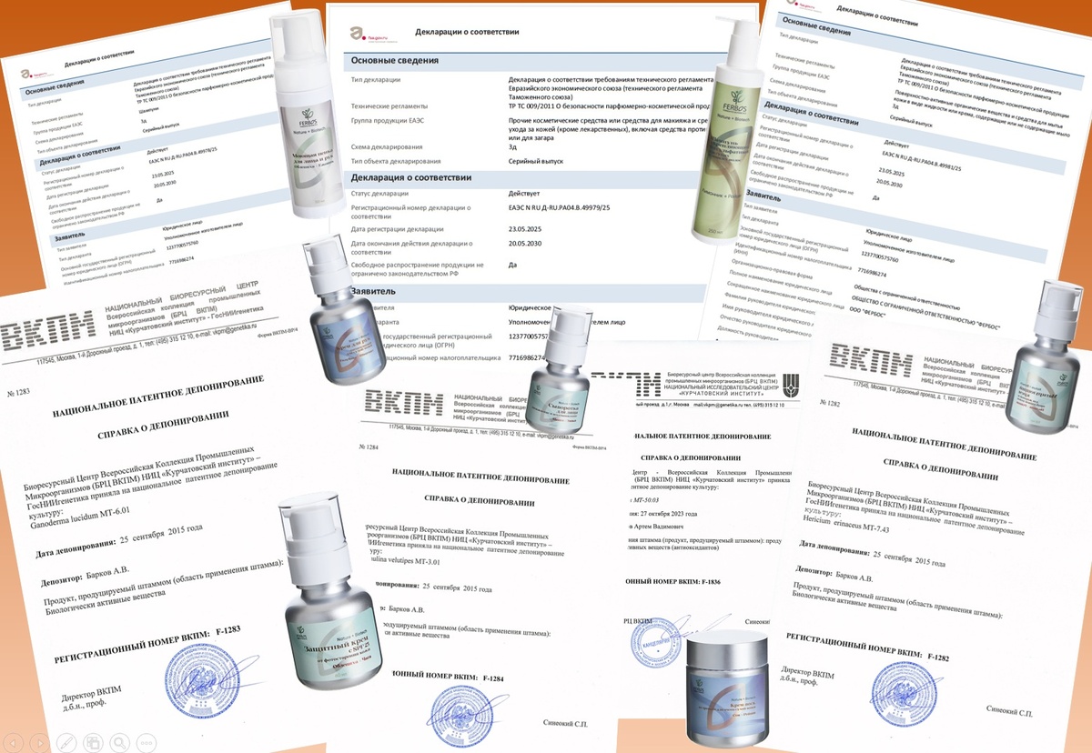 Ферментированные экстракты, являющиеся основой антивозрастной косметики Ferbos, изготавливаются на современном биотехнологическом оборудовании Центра коллективного пользования «Промышленные биотехнологии» ФИЦ «Фундаментальные основы биотехнологии» РАН. Все культуры грибов, используемые для ферментации, депонированы в качестве производственных штаммов в НБЦ «Всероссийская коллекция промышленных микроорганизмов» НИЦ «Курчатовский институт». Косметические средства нашего бренда изготавливаются по собственным оригинальным рецептурам на контрактном производстве Парфюмерно-косметической компании «Лаборатория Монздрав» в строгом соответствии с действующими ГОСТами. В производстве используется высококачественное безопасное сырьё проверенных отечественных и зарубежных производителей. По результатам лабораторных испытаний образцов установлено соответствие косметической продукции Ferbos требованиям Технического Регламента Таможенного Союза 009/2011 «О безопасности парфюмерно-косметической продукц