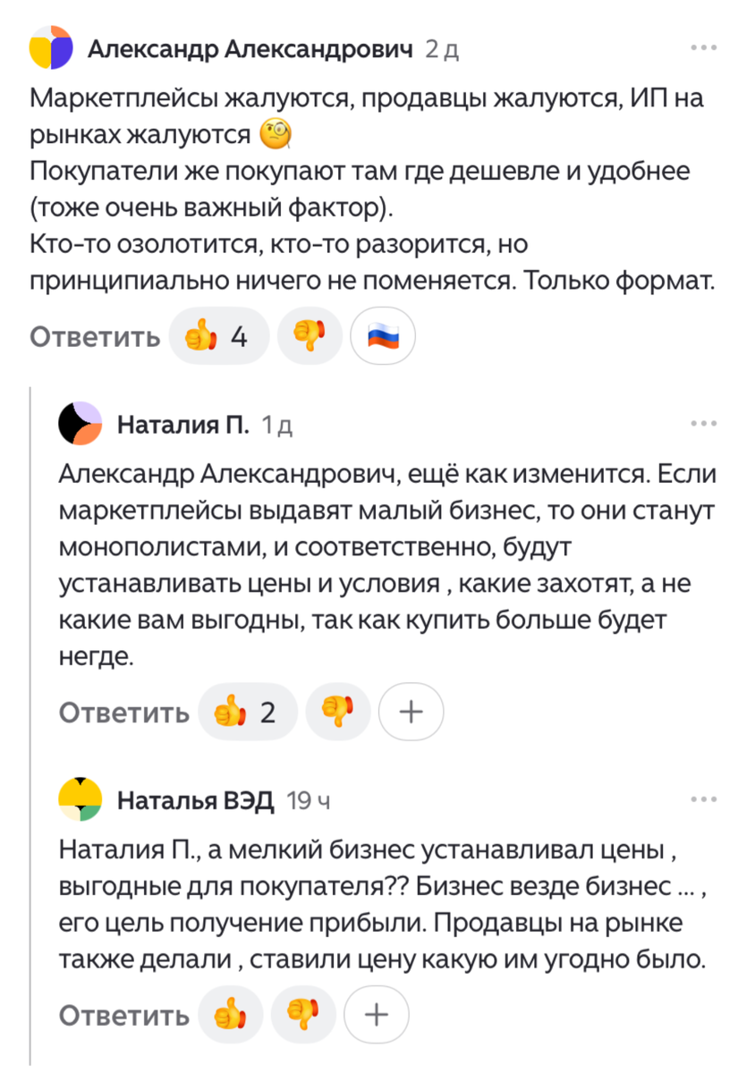 Как и обещала, хочу постепенно обсудить несколько комментариев под нашумевшей статьей под названием «Сначала маркетплейсы убили малый бизнес, затем китайцы уничтожили выживших», вот ссылка 👇 для тех, кто не читал .