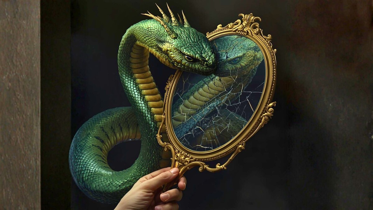 - Зеркало — триумф рефлексии: И, наконец, главное. Зеркало. Это не оружие. Это инструмент познания. Оно не атакует. Оно просто возвращает образ. Василиск, убивающий всё живое взглядом, погибает от собственного отражения. Почему? Потому что его сила рассчитана на Другого. А в зеркале он встречает не Другого, а Себя. И его же собственный механизм уничтожения, лишённый внешней цели, обращается внутрь. Это крах системы, которая не способна к самопознанию, к рефлексии, к диалогу с собой.