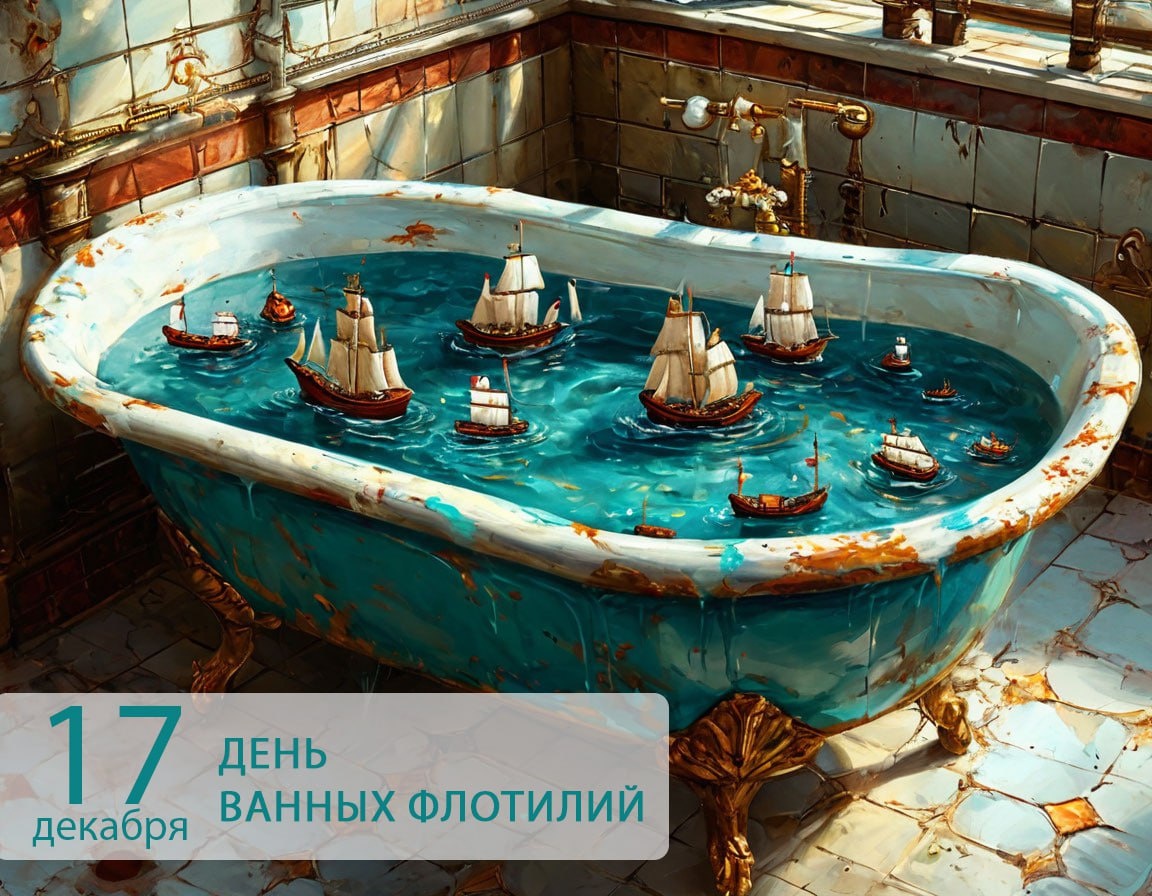 Сегодня 17 декабря - День ванных флотилий 🛁 В этот день по всему миру люди вспоминают детство, наполняя пенные ванные и запуская в них лодочки, уточек и другие подходящие предметы. Кто и когда это придумал, неизвестно, но почитателей у этого события предостаточно. 🎉 — буду праздновать сам. 🤗 — есть кого поздравить. 👎 — не праздную.