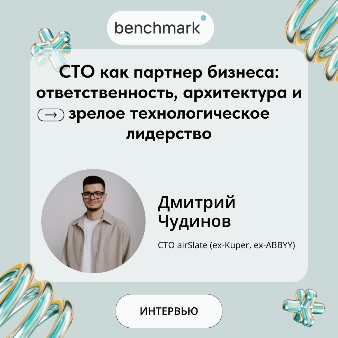 Что определяет зрелость технической функции сегодня? Почему архитектура – это не цель, а инструмент? И как CTO помогает бизнесу принимать решения, а не просто «выбивает бюджеты»? В нашем новом интервью мы разговариваем с Дмитрием Чудиновым, CTO airSlate (ex-Kuper, ex-ABBYY) – о лидерстве через системность, инженерной культуре, балансе архитектуры и процессов, а также о технологических решениях, которые действительно масштабируются. 🔖Ключевые цитаты из интервью: О лидерстве в технологиях: «Для меня фундаментом технологического лидерства является умение работать с неопределённостью. Независимо от масштаба и индустрии, лидер почти всегда принимает решения без полной информации и несёт ответственность за их последствия». О скорости и фокусе: «В моей практике ускорение почти всегда начиналось не с “делать быстрее”, а с “перестать делать лишнее”» Об инженерной культуре: «Фундамент зрелой инженерной культуры – это ownership и ответственность за результат. Не за выполнение задач и не