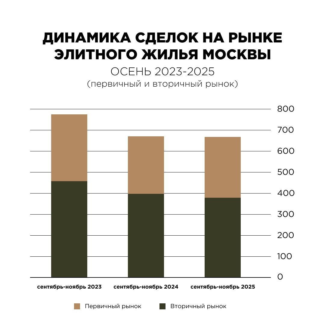 Общий объем: ~669 сделок. Это на 2 сделки больше, чем осенью 2024 года. Рынок принял новые правила игры: «первичку» драйвят рассрочки, «вторичку» — комфортное ценообразование.