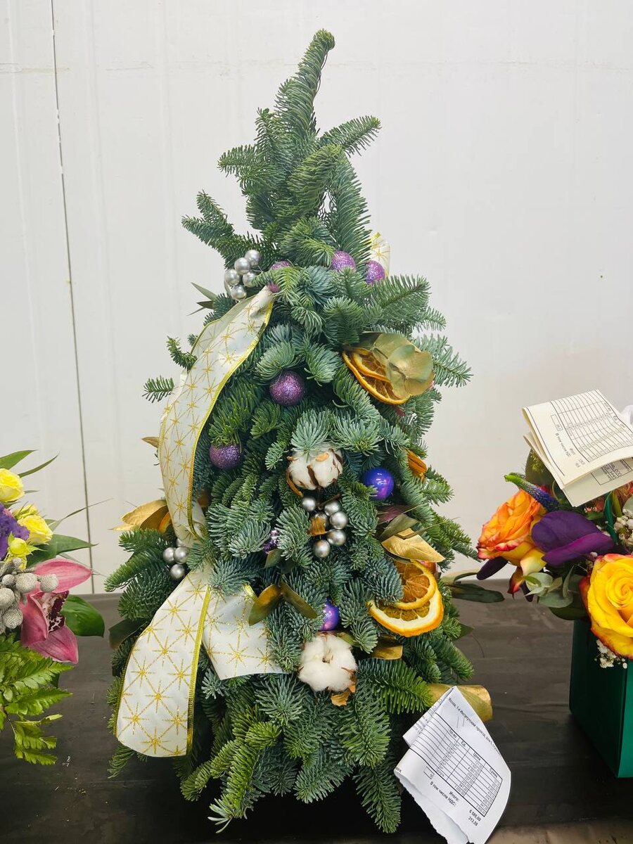 Небольшая ёлочка из веточек Нобилиса станет прекрасным украшением вашего дома. (От 6 000 рублей.)