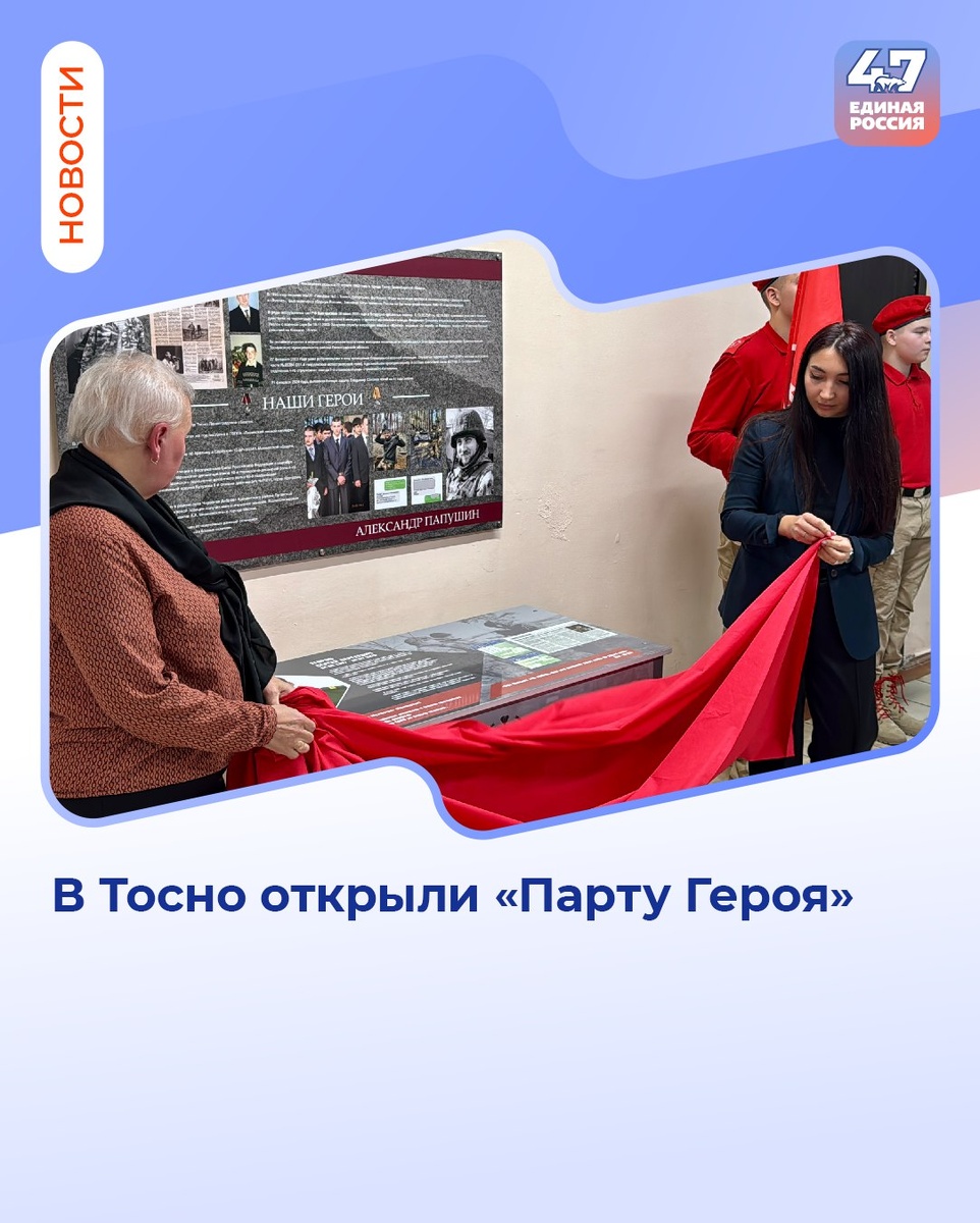 Тосно состоялось открытие «Парты Героя» в честь участника специальной военной операции, выпускника этой школы Сергея Егорова. Открыли «Парту Героя» мама и супруга Сергея. Близкие также выступили с трогательной речью о своём Герое и поделились его боевой историей. Сергей Егоров награжден медалью «Оператор БПЛА за боевое отличие» и «Орденом мужества» посмертно. 📚 Образовательный проект «Парта Героя» рассказывает школьникам о земляках, проявивших личное мужество, совершивших доблестный поступок. #ЕдинаяРоссия #ЕРЛенобласть #ЕР47 #СвоихНеБросаем #ZаМир