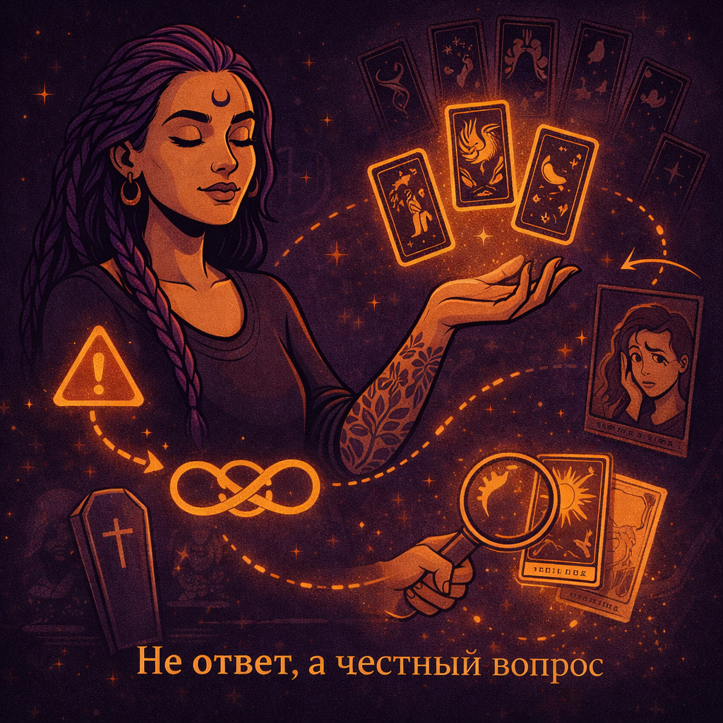 И не в партнёре. Конфликт был здесь: Аня использовала Таро не как инструмент анализа, а как способ снять тревогу на 10 минут. Каждый расклад = временное облегчение.