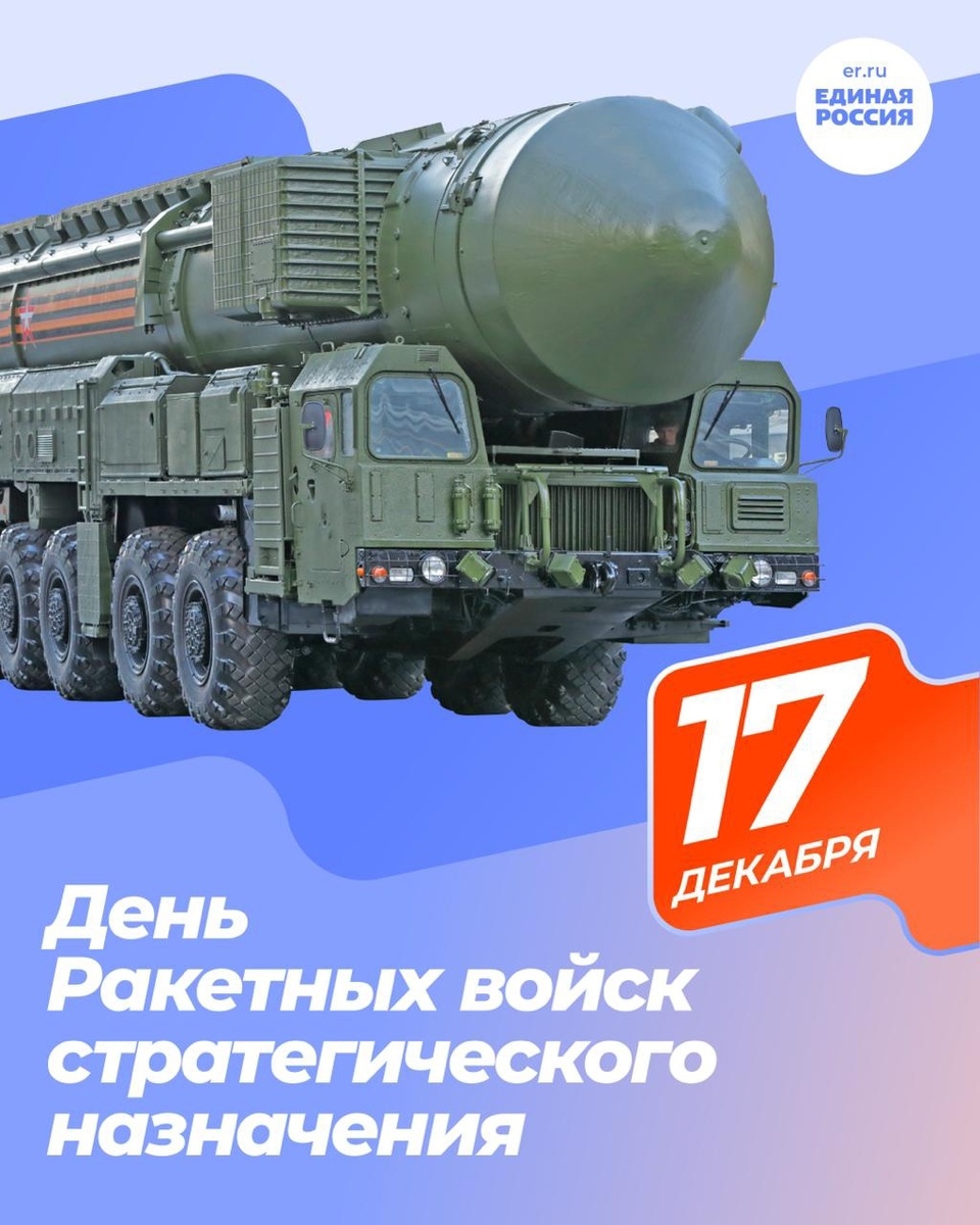 День Ракетных войск стратегического назначения – профессиональный праздник военнослужащих и гражданского персонала, причастных к обеспечению стратегической безопасности России. 17 декабря 1959 года Президиум ЦК КПСС и Совмин СССР приняли решение о создании Главного штаба РВСН и учреждении должности Главнокомандующего. С этого дня ракетные войска официально стали отдельным видом Вооруженных Сил. Ракетно-ядерный щит нашей страны является надёжным фактором сдерживания, он давно превратился из сугубо военного в политический аргумент. Ядерная триада России включает ракетные комплексы стратегического назначения шахтного и подвижного грунтового базирования – ПГРК типа «Тополь-М» с моноблочной термоядерной и «Ярс» – с разделяющимися боеголовками и средствами преодоления ПРО вероятного противника. Такие комплексы являются единственными в мире. Также в триаду входят уникальные сверхзвуковые самолеты-ракетоносцы Ту-160 «Белый лебедь». Они способны нести 12 ядерных крылатых ракет внутри фюзеляжа.