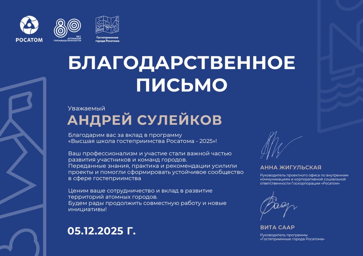 Высшая школа гостеприимства Росатома (ВШГР) приглашает