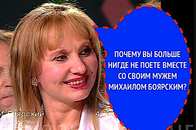 ЗРИТЕЛЬ: «Лариса, когда же вы всё-таки больше переживали? Вот сейчас, на музыкальном ринге 90-х или тогда, в 80-х, когда вы помогали Михаилу вместе с Серёженькой участвовать в музыкальном ринге?» ЛАРИСА ЛУППИАН: «Не знаю, я не переживала ни тогда, ни сейчас. Для меня удовольствие находиться здесь, в окружении публики, для которой мы работаем. Мы артисты, и находиться в центре внимания для нас это удовольствие. Так что я не переживаю, независимо от того, каким будет результат». ЗРИТЕЛЬ: «Скажите, пожалуйста, а почему же тогда такое замечательное трио Боярских больше не выступает? Может быть, вас испугала недовольная реакция публики? У меня есть письмо из 80-х: "Боярский организовал семейный подряд, чтобы заработать в три раза больше. Заставил сына хлопать в ладоши, а жену — заслуженную артистку — производить на ринге заслуженные кривляния". Вам тогда приходилось сталкиваться с такой негативной реакцией?» ЛАРИСА ЛУППИАН: «Как ни странно, никогда не приходилось, и я впервые слышу такой о