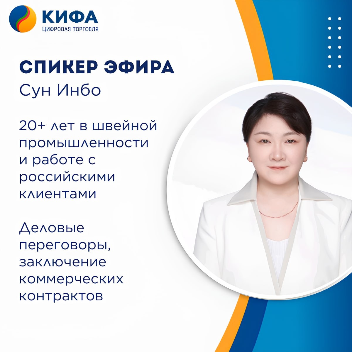 👀 Сумки были, обувь была. Кажется, мы что-то забыли… А забыли самое главное — одежду! Это направление, с которым работает значительная часть селлеров на Wildberries и без которого невозможно представить структуру продаж площадки. 🎙Поэтому третьим спикером эфира будет Сун Инбо (Настя) — эксперт по направлению одежда в КИФА. В зоне ответственности Насти: ✅ сопровождение клиентов по всей цепочке работы с одеждой ✅ переговоры с российскими заказчиками и китайскими фабриками ✅ формирование и согласование коммерческих условий ✅ точная фиксация требований к изделию (крой, посадка, материалы, параметры) ✅ контроль соответствия запроса клиента реальному производству У Сун Инбо более 20 лет опыта в швейной промышленности и глубокое понимание всех этапов работы с категорией. Если в эфире не окажется отдельного спикера по вашей категории, например, по технике или товарам для дома — не переживайте! Мы затронем все товарные направления, актуальные для 2025 года и 2026, а менеджеры КИФА рабо