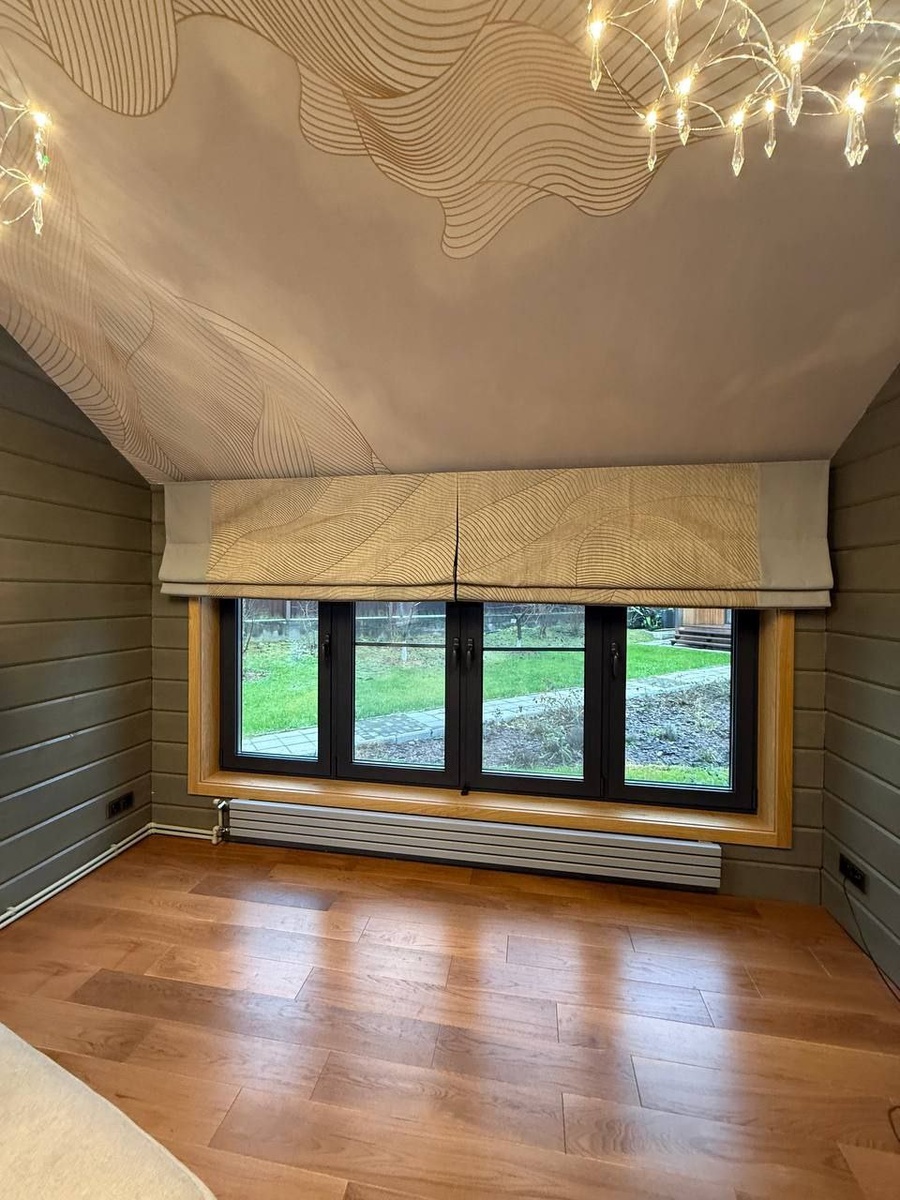 🩶 Возможность продолжить изображение с потолка на римские шторы - новое слово в текстильном декорировании.