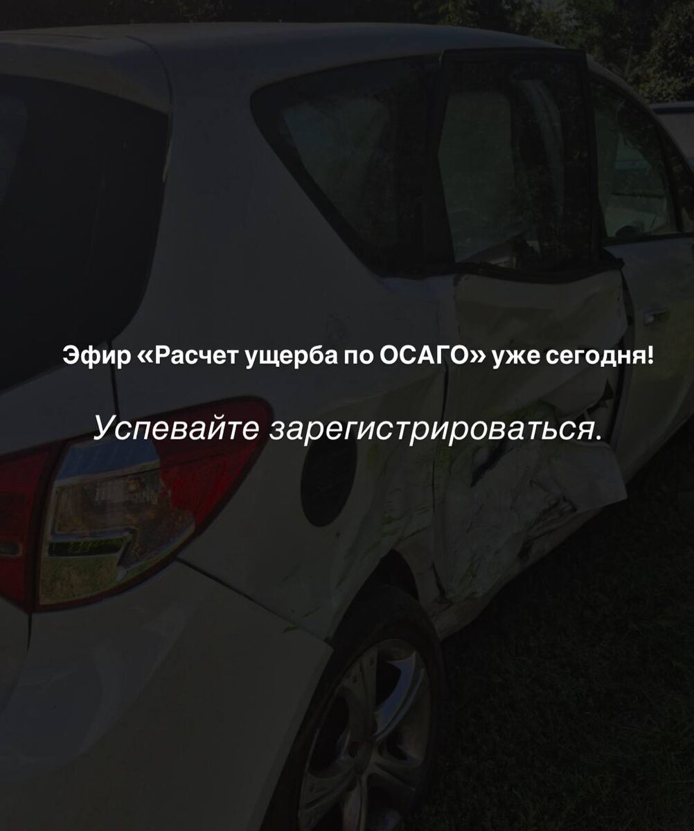 ? Спойлер: не в вашу пользу. Сегодня я проведу бесплатный эфир на эту тему, где простыми словами расскажу, почему дверь на ваш автомобиль может стоить 300к, а получите вы за не в рамках ОСАГО всего 40к. Также поделюсь информацией, как этого избежать. Встречу мы начнем в 19:00МСК, вы еще успеваете занять свое место на ней. Чтобы получить ссылку на подключение, регистрируйтесь по ссылке ниже 👇 🔗ПОЛУЧИТЬ ССЫЛКУ НА ПОДКЛЮЧЕНИЕ К ЭФИРУ