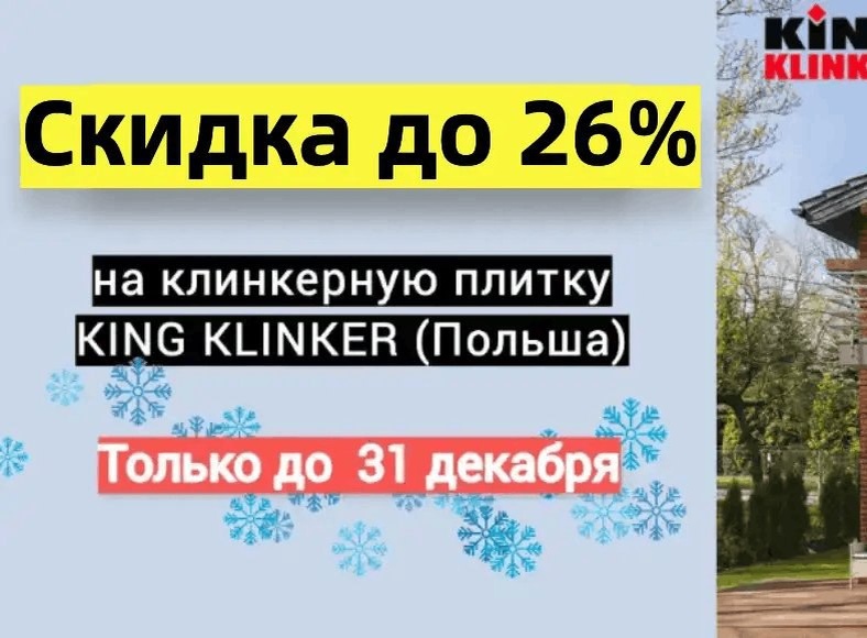 π₯ King Klinker β ΡΠΊΠΈΠ΄ΠΊΠΈ Π΄ΠΎ 26% Π΄ΠΎ 31 Π΄Π΅ΠΊΠ°Π±ΡΡ