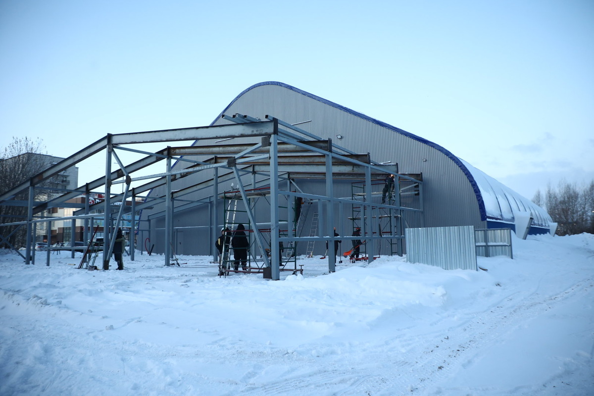 «Запрос на строительство крытой хоккейной коробки у жителей Затулинского жилмассива был давно, и благодаря совместной работе с Советом депутатов города и Законодательным собранием Новосибирской области стала возможна реализация этого проекта. Мы нашли средства на строительство – около 100 млн рублей, – отметил мэр Максим Кудрявцев. – Это многофункциональное спортивное пространство: зимой здесь будут проводиться тренировки по хоккею, фигурному катанию, также планируется организовать прокат коньков для массовых катаний. В летнее время жители смогут здесь играть в футбол и волейбол. Строительство идёт по графику, к лету все работы должны завершить». К строительству хоккейной коробки с каркасно-тентовым покрытием на аллее вдоль улицы Петухова приступили в этом году. Объект включает в себя модульную тёплую раздевалку, тренировочный зал, уличную площадку для воркаута и паркура. На сегодня завершены работы по возведению каркасно-тентовой конструкции, которая будет служить крышей хоккейной пло