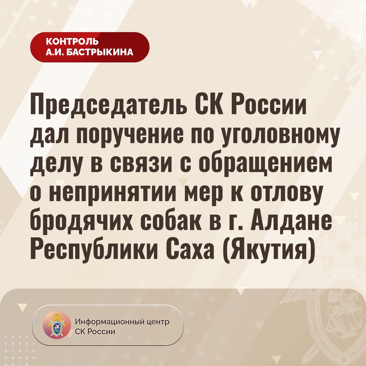 Председатель СК России дал поручение по уголовному делу в связи с обращением о непринятии мер к отлову бродячих собак в г. Алдане Республики Саха (Якутия)