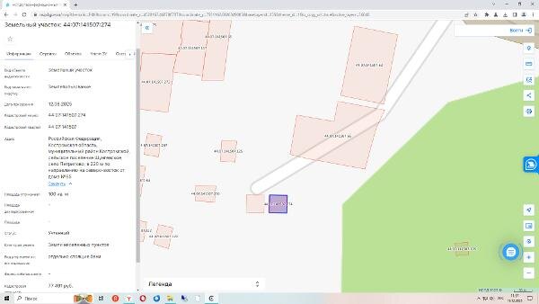 Название: Земельный участок с кадастровым номером 44:07:141507:274, общей площадью 100 кв.м., расположенного по адресу: Российская