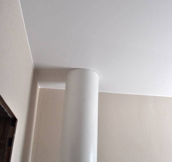 Представьте полотно натяжного потолка. Оно цельное, бесшовное и натягивается по всему периметру комнаты. Но на его пути возникает препятствие — труба отопления, водоснабжения или вентиляции, которая спускается с плиты перекрытия и стоит, не спросив нашего мнения.