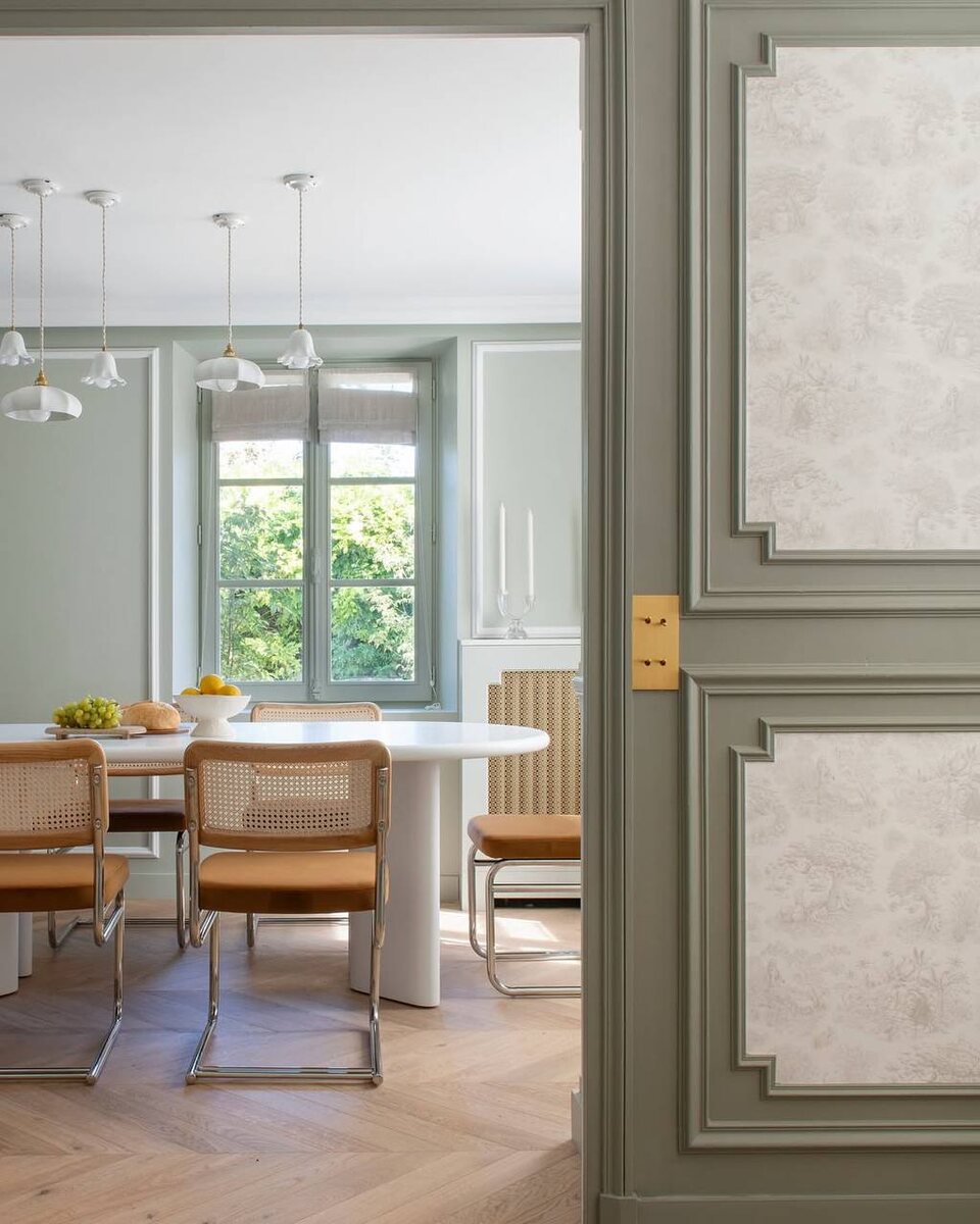 ? В этой столовой и гостиной ответ — да. Спокойная палитра, мягкий дневной свет и выверенные пропорции создают ощущение уюта, а архитектурные детали добавляют характер. Молдинги на стенах подчёркивают геометрию пространства, делают стены глубже и визуально «собирают» интерьер. В столовой они аккуратно оформляют пространство вокруг обеденной зоны, а в гостиной — создают благородный фон для камина и мягкой мебели. ✨ Сохраните проект в закладки, чтобы вернуться к этим деталям позже.