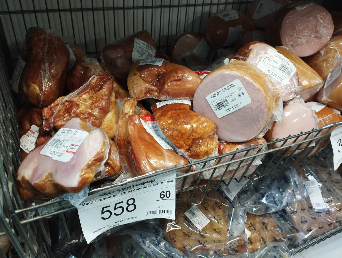 - Мясо (если тщательно выбирать). Да, холодильники выглядят не как в глянцевом журнале, но если внимательно смотреть на дату изготовления и внешний вид, можно найти вполне приличную свинину по очень привлекательной цене. Например, видел свинину категории "А" за 558 рублей/кг – отличный вариант для шашлыка или плова. Главное, не забывайте: доверяй, но проверяй! Мясо должно быть свежим, без подозрительного запаха и цвета.