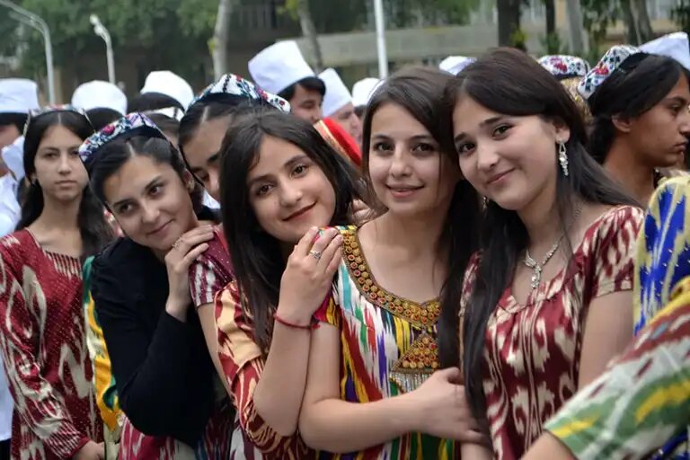 Таджикские девушки в национальных платьях.
