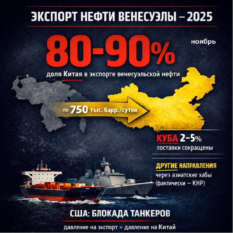 организацией. 🌎 История Венесуэлы начинается задолго до появления США. Земли были открыты европейцами в конце XV века, а в XIX веке страна прошла войну за независимость под руководством Симона Боливара и уже более 200 лет является суверенной. ➡️ Штаты не участвовали ни в «открытии», ни в формировании государственности. Их интерес возник в XX веке - после открытия крупных нефтяных месторождений, на которых американские компании стали добывать черное золото на основе концессий, выданных Боливарианской республикой, а не по праву собственности. 🛢 Национализация Венесуэлой нефтяной отрасли в 1970-е годы была суверенным и общепринятым по тем временам решением. Поэтому разговоры о «краже нефти и земли» - это не про историю и право, а про подмену экономических интересов громкой политической риторикой. Однако на самом деле Каракас лишь удобный повод и инструмент. Венесуэлу пытаются превратить в показательную «разминку» - демонстрацию того, как можно вытеснять Китай из стратегически важного