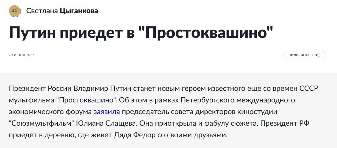🎬 Путин появится в новом эпизоде «Простоквашино» — студия подтвердила, что президент станет отдельным персонажем деревни