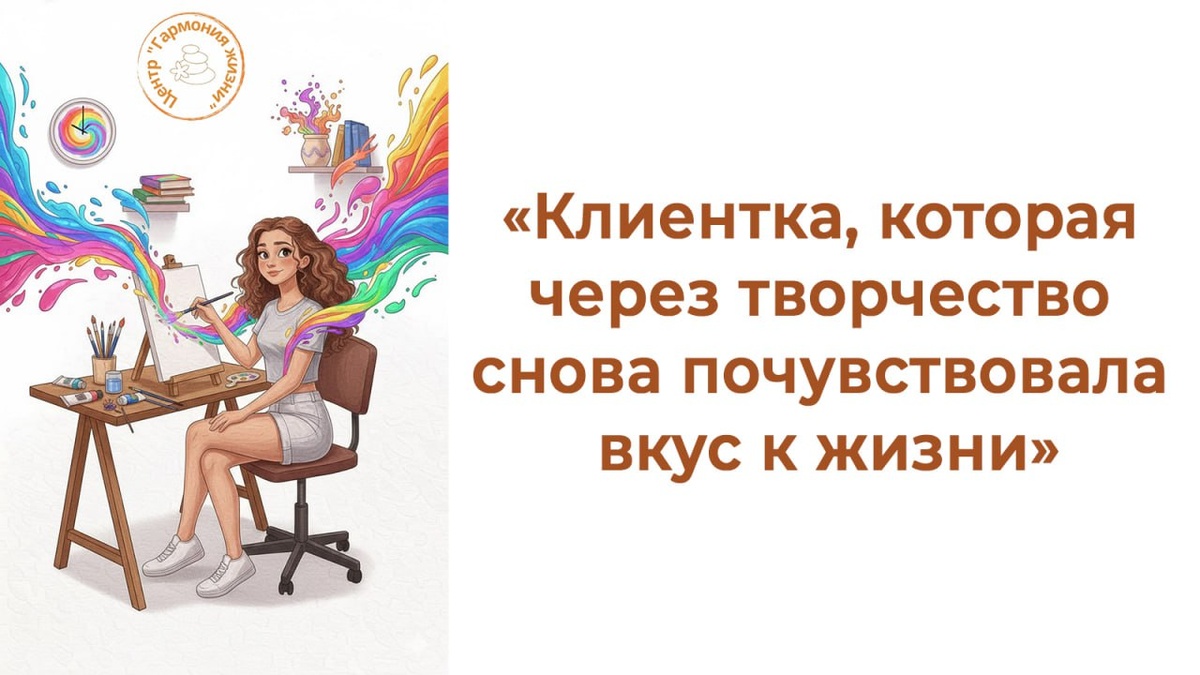Анастасия Крестылёва Она пришла ко мне с очень тихим запросом. «У меня вроде бы всё нормально… Но я как будто живу на автомате. Ничего не радует по-настоящему». Работа, семья, обязанности — всё на месте. А вот ощущение себя — где-то потерялось по дороге. На сессиях она часто говорила: «Я ничего не чувствую. Ни плохого, ни хорошего». И это было самое тяжёлое — не боль, а пустота. Мы долго не искали “решение”. Сначала просто учились замечать: усталость, раздражение, желание тишины. Очень маленькие сигналы жизни. В какой-то момент она вскользь сказала: «Раньше я любила рисовать… но это было давно, несерьёзно». Именно с этого всё и началось. Не с картины, не с цели, не с “результата”. А с разрешения: взять бумагу, краски и ничего не уметь. Пачкать руки. Делать неловко. Не оценивать. На одной из встреч она вдруг расплакалась. И сказала: «Мне так хорошо и так страшно одновременно. Я как будто снова что-то чувствую». Через творчество стали возвращаться эмоции. Сначала грусть. Потом