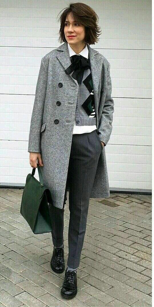 - Эксперимент с тотал-луком. Составьте аутфит из трех серых вещей разных оттенков, но одной глубины (все холодные или все теплые). Поиграйте фактурами: трикотаж + шелк + шерсть.
