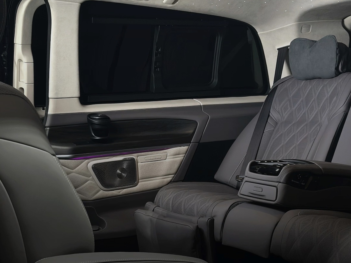 - Перешив штатных сидений второго ряда под общий дизайн проекта;